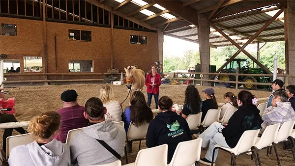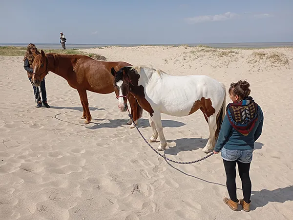 L’initiation se déroule en petit groupe, afin de favoriser l’échange, l’écoute et la mise en pratique dans le respect du rythme des animaux.